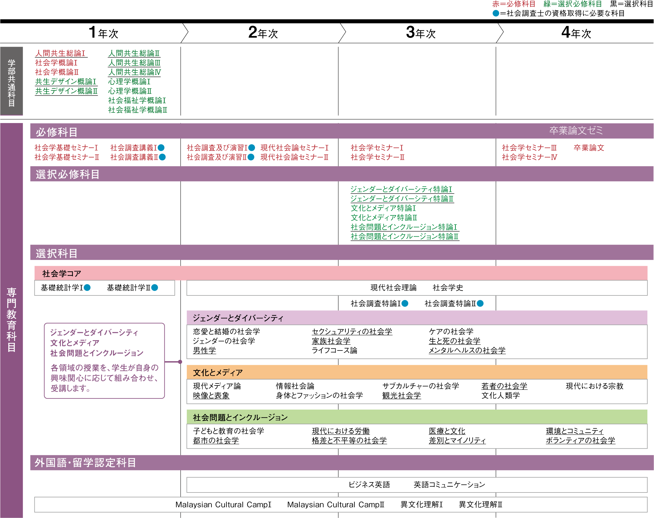 ※下線が引かれた科目は新カリキュラムのため科目の詳細は社会学科ホームページで確認してください