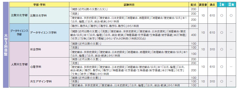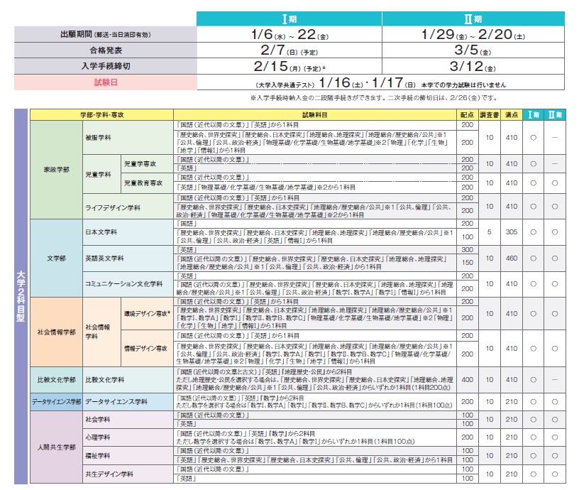 2科目型と3科目型を選べる学科があります。複数の学科等に出願可能です。