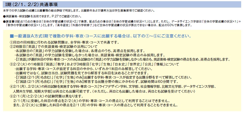 - また、「英語資格・検定試験の成績」を提出した場合、それを換算した得点と「大学入学共通テストの英語の成績」を換算した得点のうち、高得点を採用します。