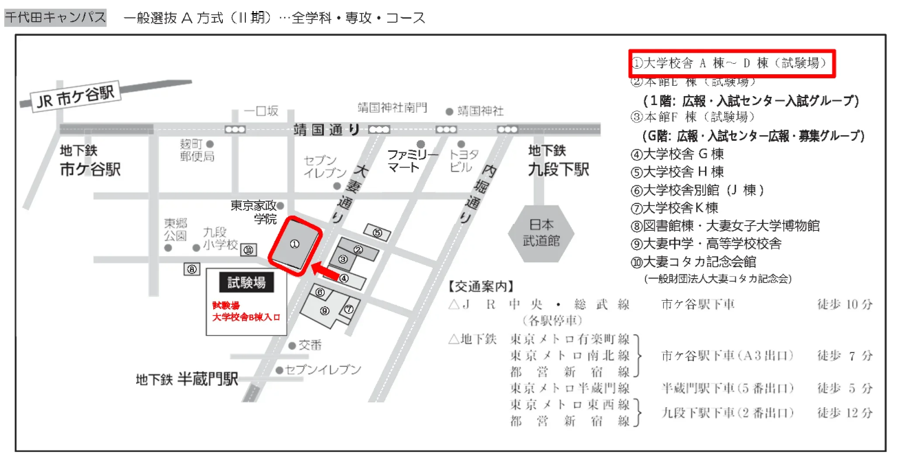 一般選抜A方式Ⅰ期の試験場の建物は、すべての受験生が大学校舎A棟~D棟になります。